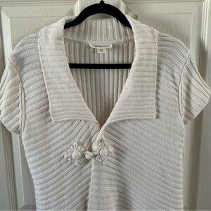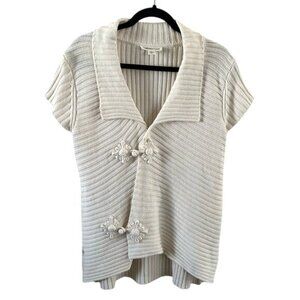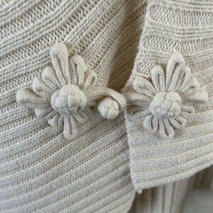 Coldwater Creek Cream Wrap Sweater Sz Med (10-12) Flower Fastener