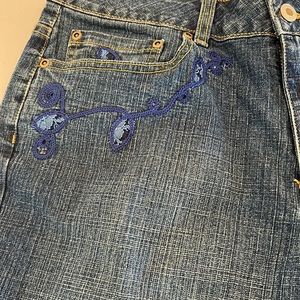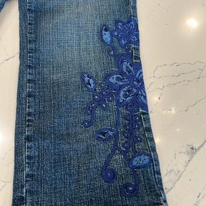 Coldwater Creek Crop Jeans with Decorative Blue Flowers sz.10