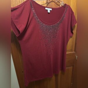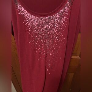 Coldwater Creek sequin tee shirt. Size large. Deep cranberry color. Subtle matte sequins on front. Super soft fabric blend.