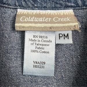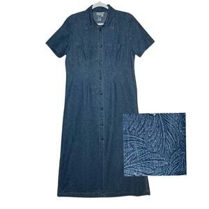 Coldwater Creek Denim Button Shirt Dress PM Palm Leaf Side Slits Retro Academia