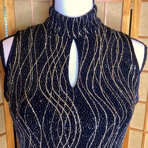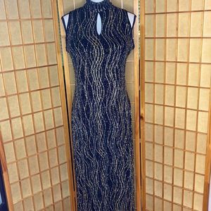 Coldwater Creek Dress Black Gold Silver Bodycon Evening Gown Dress