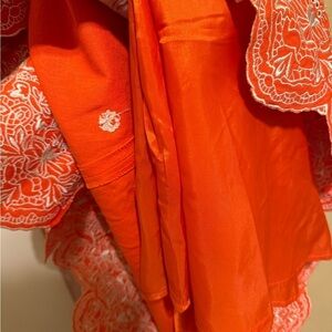 Coldwater Creek Dress Orange White Embroidery Lined Scalloped Sleeves Neck & Hem Cotton & Linen Size 8