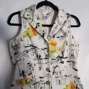 Coldwater Creek Dress P10 Travel Sketch Print Sleeveless Button Front