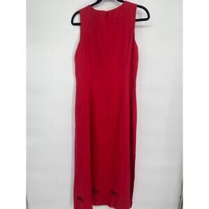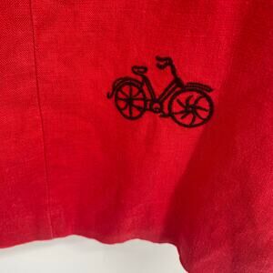 Coldwater Creek Dress Women’s 14 Red Linen Bicycle Embroidered Whimsical
