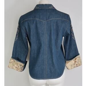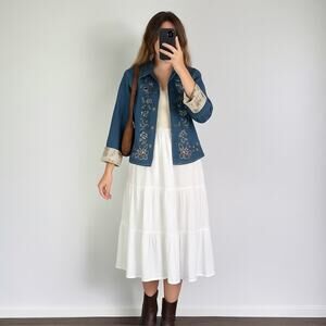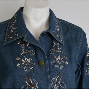 Coldwater Creek Embroidered Denim Jacket Boho Cottagecore Western Floral Small
