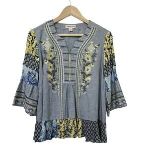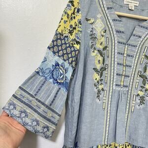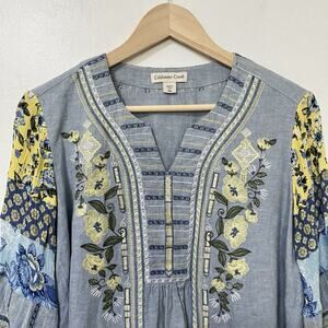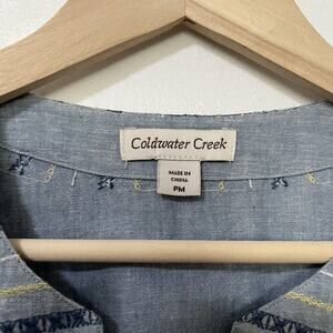 Coldwater Creek Embroidered Floral Linen Blend Top Size MP Boho Bell Sleeves
