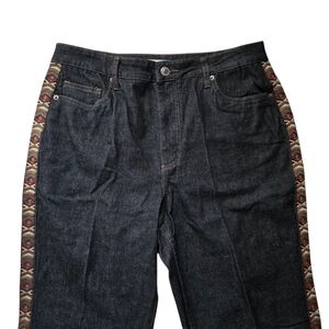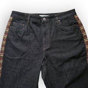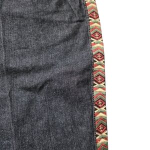 - Dark wash/black denim with southwest embroidery stripe down the legs
