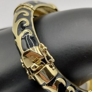 Coldwater Creek Enamel Spring Hinged Clasp Gold Black Stackable Bangle Bracelet