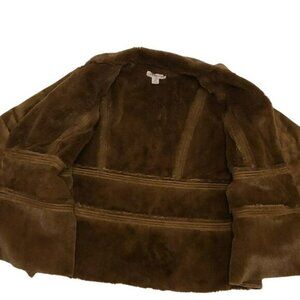 Coldwater Creek Faux Shearling Coat Button Up Brown Women's Large L 14 16