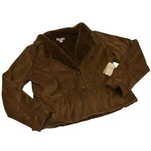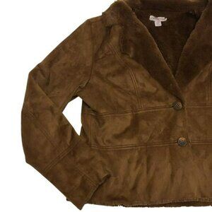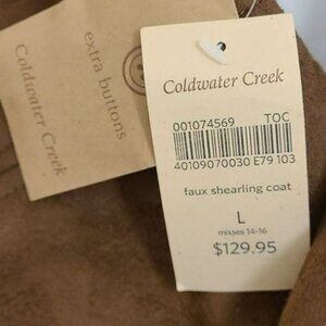 Coldwater Creek Faux Shearling Coat Button Up Collar Brown Women's Large L NWT