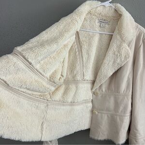 Coldwater Creek Faux Suede Faux Fur Jacket Ivory Size L Y2K Penny Lane Luxe Coat