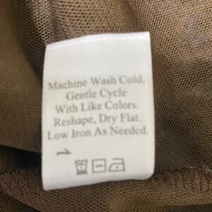 It is a sheer print with brown lining. Very flattering crossover fit.