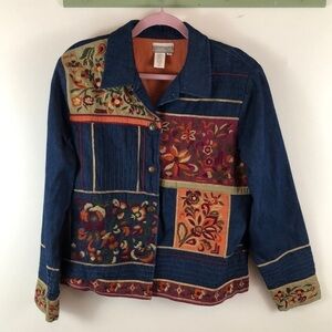 Coldwater Creek Floral Embroidered Gold Metallic Denim Jacket Shacket size L