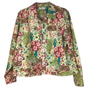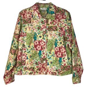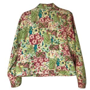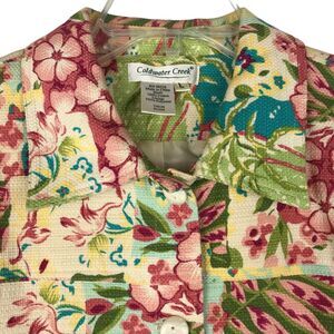 Coldwater Creek Floral Patchwork Print Jacket Button Front Collar Cotton Large