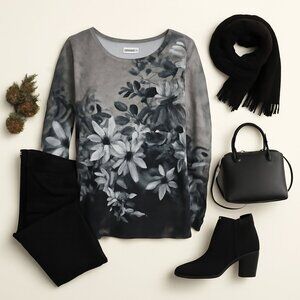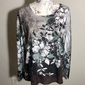 Coldwater Creek Floral Print Long Sleeve Top, Size L - Made in USA, Stylish & Elegant This Coldwater Creek long sleeve top is a perfect blend of comfort and style. Made in the USA, it features a stunning floral print in muted shades of green, black, and gray, ideal for layering or wearing on its own. The soft, breathable fabric makes it perfect for year-round wear, while the elegant floral design adds a touch of sophistication. Whether paired with jeans or a skirt, this top is an effortless addition to any wardrobe.