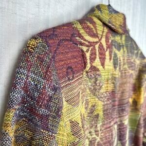 Relaxed fit blazer shacket by Coldwater Creek made from a thick woven fabric in rainbow multicolor muted earth tones with a floral pattern.
