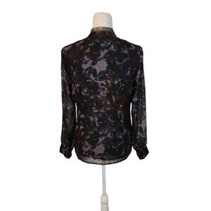 Coldwater Creek Floral Top Women Size XS/4 Black Preppy Whimsigoth Career