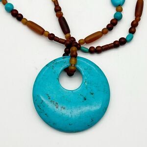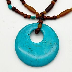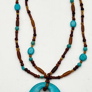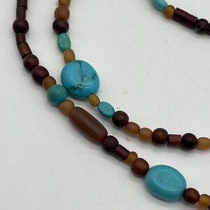 Coldwater Creek Genuine Stone Turquoise Horn Wood Bead 2 Strand Fashion Necklace