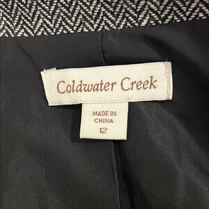 This Coldwater Creek blazer in a sophisticated gray hue features a tailored silhouette with notched lapels, offering a polished look for professional settings. Crafted from a textured fabric, it provides a refined touch to any outfit, making it a versatile addition to your wardrobe.