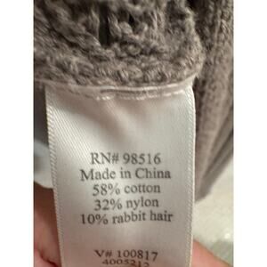 Elevate your wardrobe with this beautiful Coldwater Creek open-front cardigan! Its asymmetrical crochet design and light, cozy feel make it the perfect layering piece. The soft gray color complements any outfit, and the blend of cotton, nylon, and rabbit hair ensures both comfort and warmth.