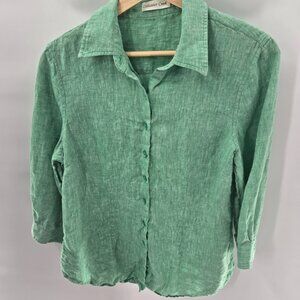 Coldwater Creek Green 100% Linen 3/4 Sleeved Button Up Size Medium 10-12