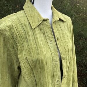 Coldwater Creek Green Suede Leather Shirt Jacket Size M