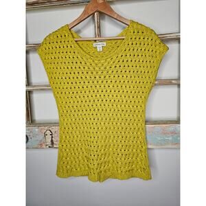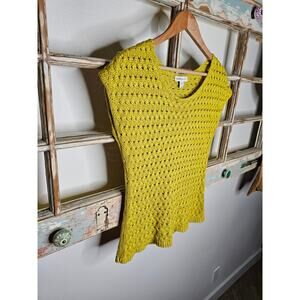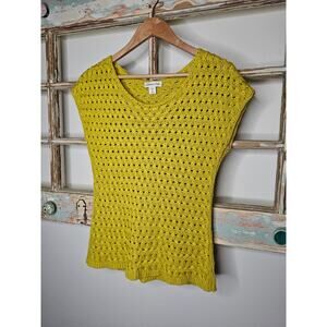Coldwater Creek Green Wide Knit Cap Sleeve Cottage Core Sweater Medium