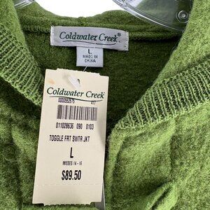Coldwater Creek Green Wool Toggle Front Sweater Jacket L NWT