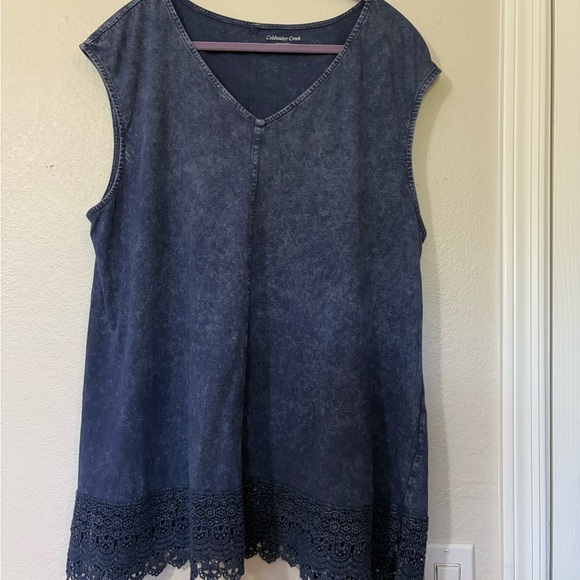 Coldwater Creek Indigo Blue Boxy Tunic Tank with Wide 4inch Lace Hem. Cotton