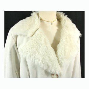 Coldwater Creek Ivory Faux Suede Shearling Fur Lined Sherpa Coat Whipstitch - Lg