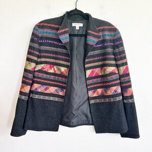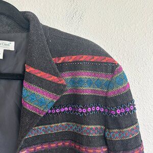 Coldwater Creek womens size 12 open front jacket/blazer. Embroidered grosgrain ribbon and beads. Fully lined.