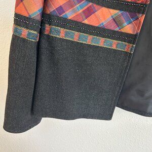 Coldwater Creek Jacket 12 Denim Blazer Embroidered Ribbon Open Artsy