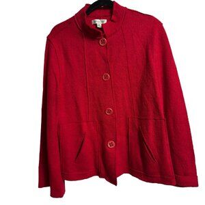 Coldwater Creek Jacket Blazer Medium Red Wool Blend 4 Button Long Sleeve