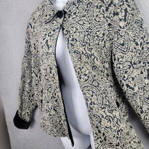 Coldwater Creek Jacket Blazer Womens L Jacquard Vintage Velvet Trim Regencycore