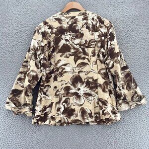 Coldwater Creek Jacket Womens 10 Brown Floral Linen Blend Button Up 3/4 Sleeve