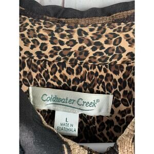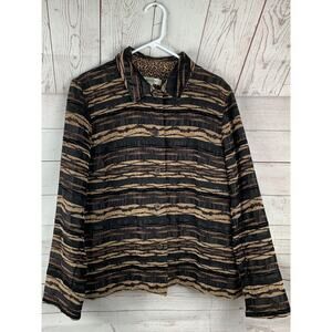 Coldwater Creek Jacket Womens 16 Black Brown Animal Print Button Down Front