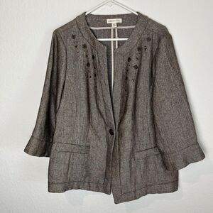 Coldwater Creek Jacket Womens 18 Brown Metallic Embellished Button Up Blazer Coat
