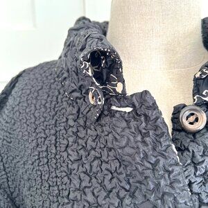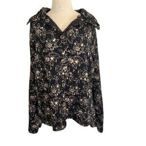 Coldwater Creek Jacket Womens Large Black Floral Reversible Collared Button Up