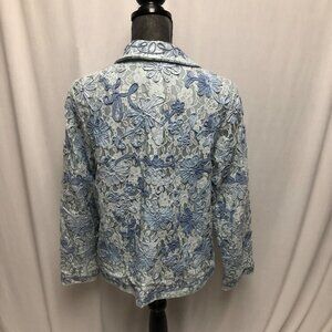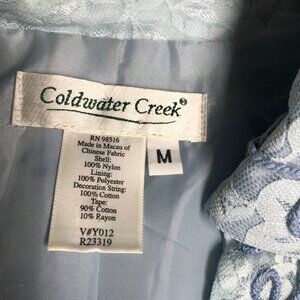 Coldwater Creek Jacket Womens Sz Medium Blue Lace Ribbon Flowers Open Blazer