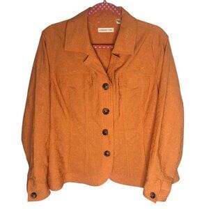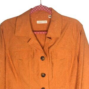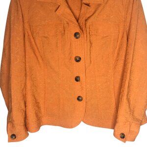 Coldwater Creek Jacket Womens W20 Orange Textured Button Up Cotton Blend Floral