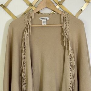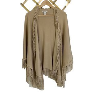 Coldwater Creek Knit Fringe Shawl Wrap Tan Western Cowboy Festival Rodeo Classic