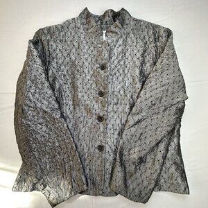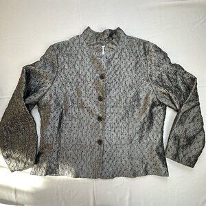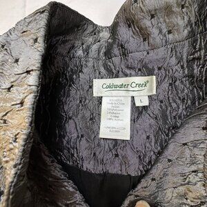 Coldwater Creek Jacket Blazer Large L Silver Black Button Up Peplum Metallic