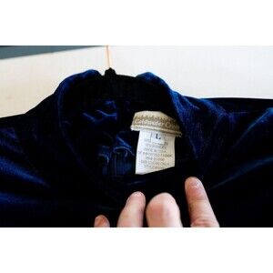 The Coldwater Creek Velvet Velour Blue Long Sleeve Modest Long Maxi Dress is a stylish and comfortable option for the holiday season. Made from luxurious velvet fabric in a beautiful blue color, this dress features long sleeves and a long maxi length. With a size L and regular fit, it is designed for women looking for a flattering and elegant outfit for special occasions. Perfect for holiday gatherings or festive events, this dress is both fashionable and practical, making it a versatile addition to any wardrobe.