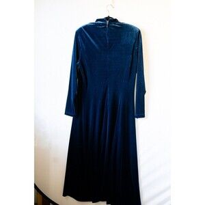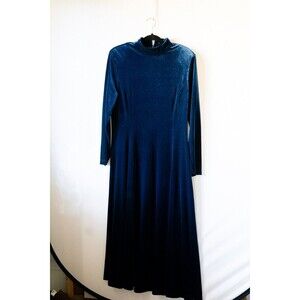 Coldwater Creek L Velvet velour blue long sleeve modest long maxi dress holiday