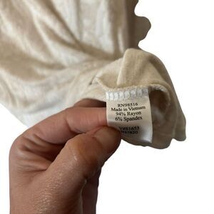 Coldwater Creek Lace Trim Jacquard Floral Scoop Neck Long Sleeve Top Cream Small