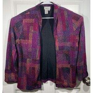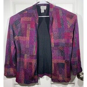 Coldwater Creek Large (L) Purple Pink Colorful Open Front Jacket Cardigan