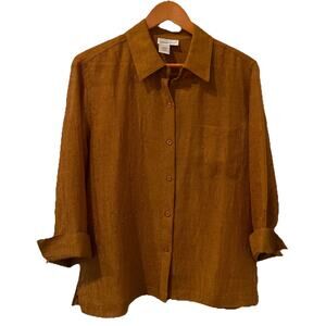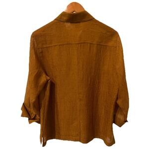 Coldwater Creek Large Sheer Rust Collared ButtonUp Blouse