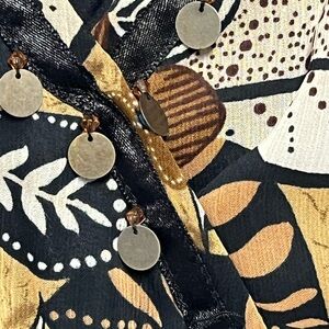 Chic midi dress with a leaf/floral pattern. Features a drop waist and sleeveless design. Ideal for versatile styling. This super cute and stylish dress is in excellent ready to wear condition and comes from a smoke free home.