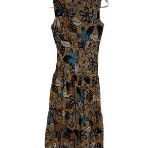 Coldwater Creek Leaf Floral Print Drop Waist Sleeveless Dress - Brown and Blue