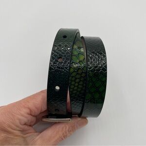Coldwater Creek Leather Green Embossed Snake Print Belt with Nickel Buckle Sz S